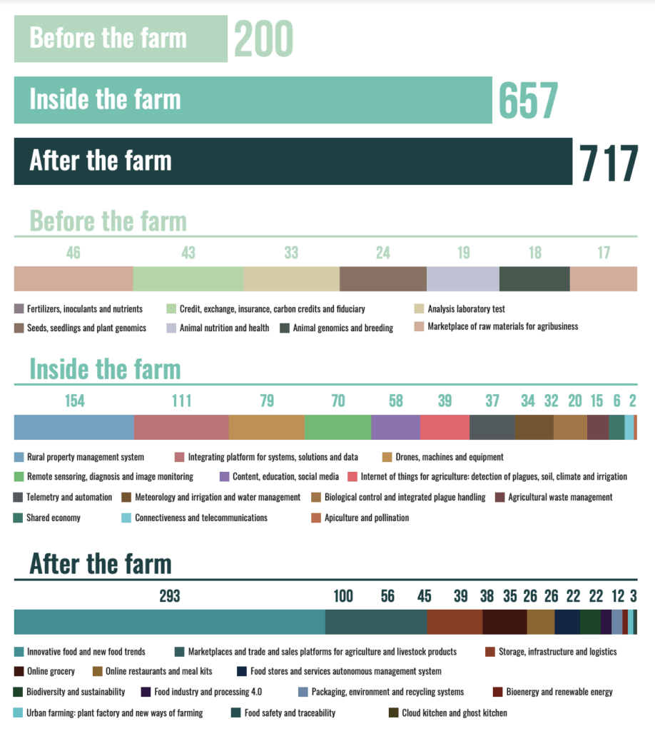 The study also provides a breakdown of Brazil’s agrifoodtech startups by focus area: